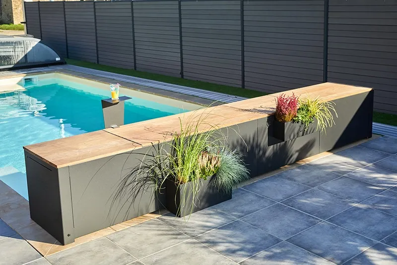 Je zwembadafdekking helemaal automatisch oprollen én heel mooi meubel toevoegen aan je tuin? Het Banc Design oprolsysteem heeft een elektrische aandrijving en je bedient ‘m super makkelijk via de sleutelschakelaar of de speciale app. Stijlvol, gebruiksvriendelijk en multifunctioneel door optionele toevoegingen als een tablethouder, leuning en opbergruimte in de bank.