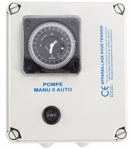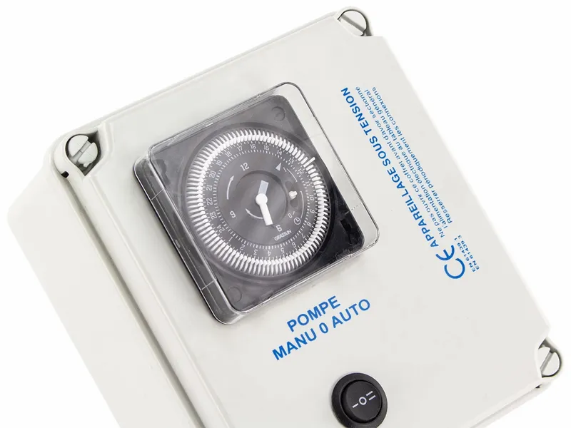 Zet je zwembadpomp op een automatische sturing om meer controle te krijgen over de looptijd en daarmee het energieverbruik van je pomp. Met deze basis sturingkast heb je de mogelijkheid om een dagklok in te stellen de zwembadpomp handmatig in te schakelen door de schakelaar op de schakelkast. Zo heb je altijd de juiste controle over je filterinstallatie en draait de zwembadpomp alleen op tijden wanneer dit echt nodig is.